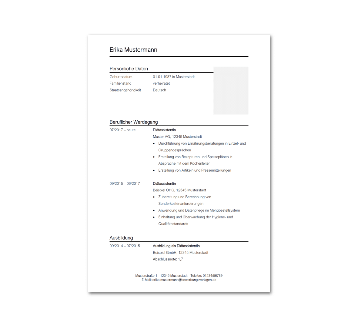 Bewerbungsvorlagen für die Bewerbung als Diätassistentin / Diätassistent